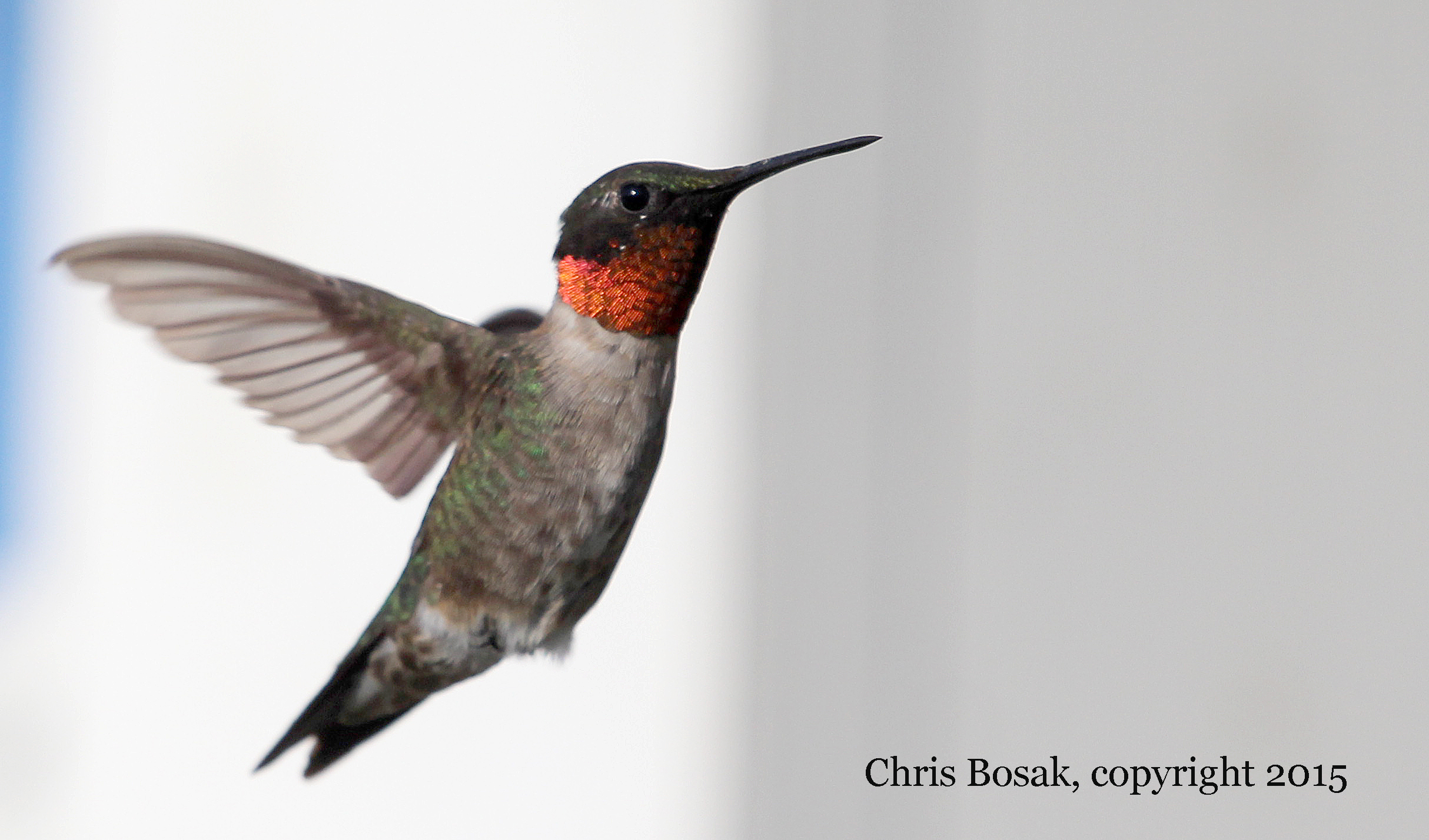 A highlight of a recent camping trip with the boys to New Hampshire was watching the hummingbirds at at the Errol Motel. The feeder was active with three females and two males (plus an aggressive yellow jacket.)