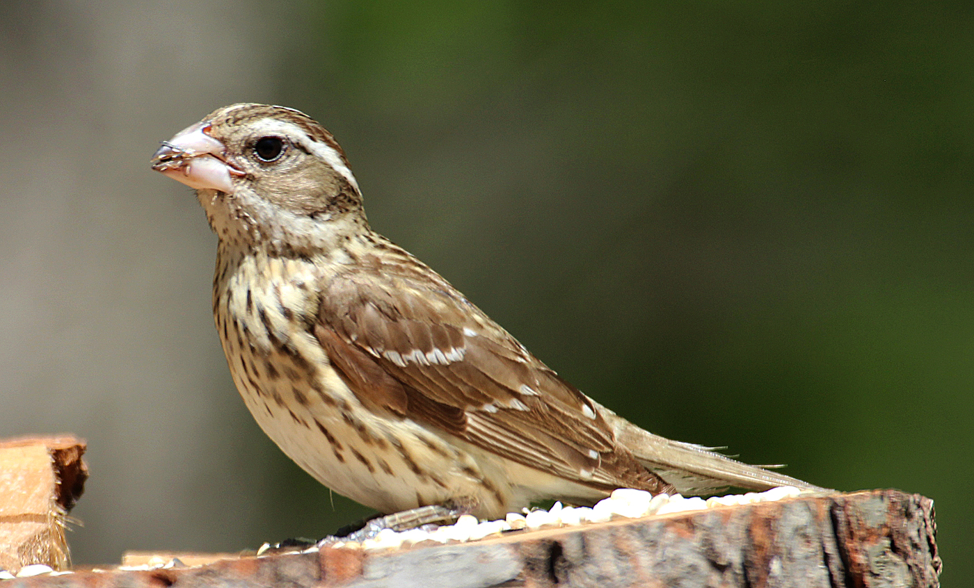 I should know better than to try to fool my viewers. Once again you passed the birding quiz with flying colors as 56 percent of you got the right answer. It is a female Rose-breasted Grosbeak. It it colored nothing like the flashy male, but the overall shape and bill size and shape are similar to the male.