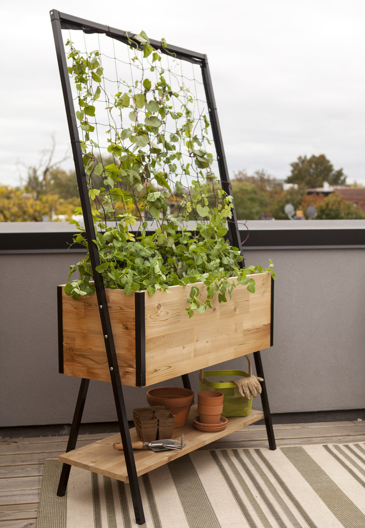 Planter boxes with built-in trellises like this Apex trellis planter enable gardeners to maximize their garden space for growing vegetables and flowers.