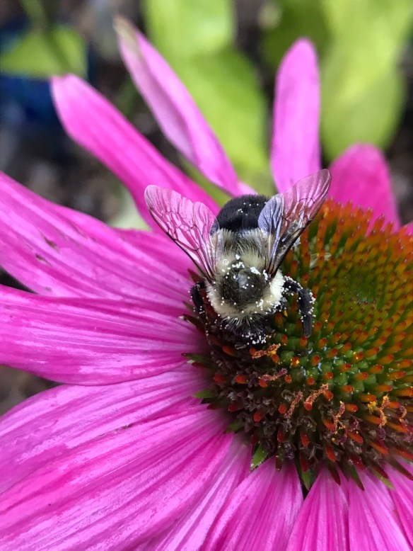 The bee in the accompanying photos is obviously finding its fill of pollen.