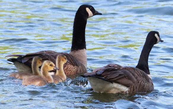 Songbirds are still passing through on their northward migration and new birds that will nest in the area are arriving every day. For instance, I saw my first-of-the-year house wren and eastern wood pewee last week. But some bird species get an earlier jump on the breeding season. Owls started months ago, many robins have nests with babies now and young waterfowl are loyally following around their parents. I came across some Canada geese and mute swan families the other day and, naturally, grabbed a few photos. Check out the size of the feet on the baby Canada geese in the photo above. Here I thought my 12-year-old in a size 10 shoe was a big deal.