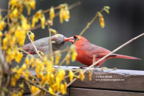 Well, for whatever it’s worth, I’m debunking the scientists’ theory. Here’s why. If the act of the male feeding the female is all about nutrition, then why does this behavior take place at bird-feeding stations? If the female needs nutrition so badly, she can hop a few feet to the left and get all the food she wants. It would probably be easier and require even less energy than craning her neck awkwardly so the male can get the food into her mouth.