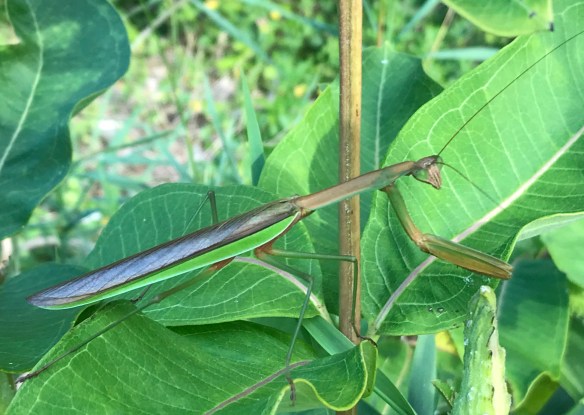 I was checking milkweed plants for monarch caterpillars and came across this instead. I’ll take it. I’ve seen a lot of Facebook posts lately featuring praying mantises. I guess it was my turn.