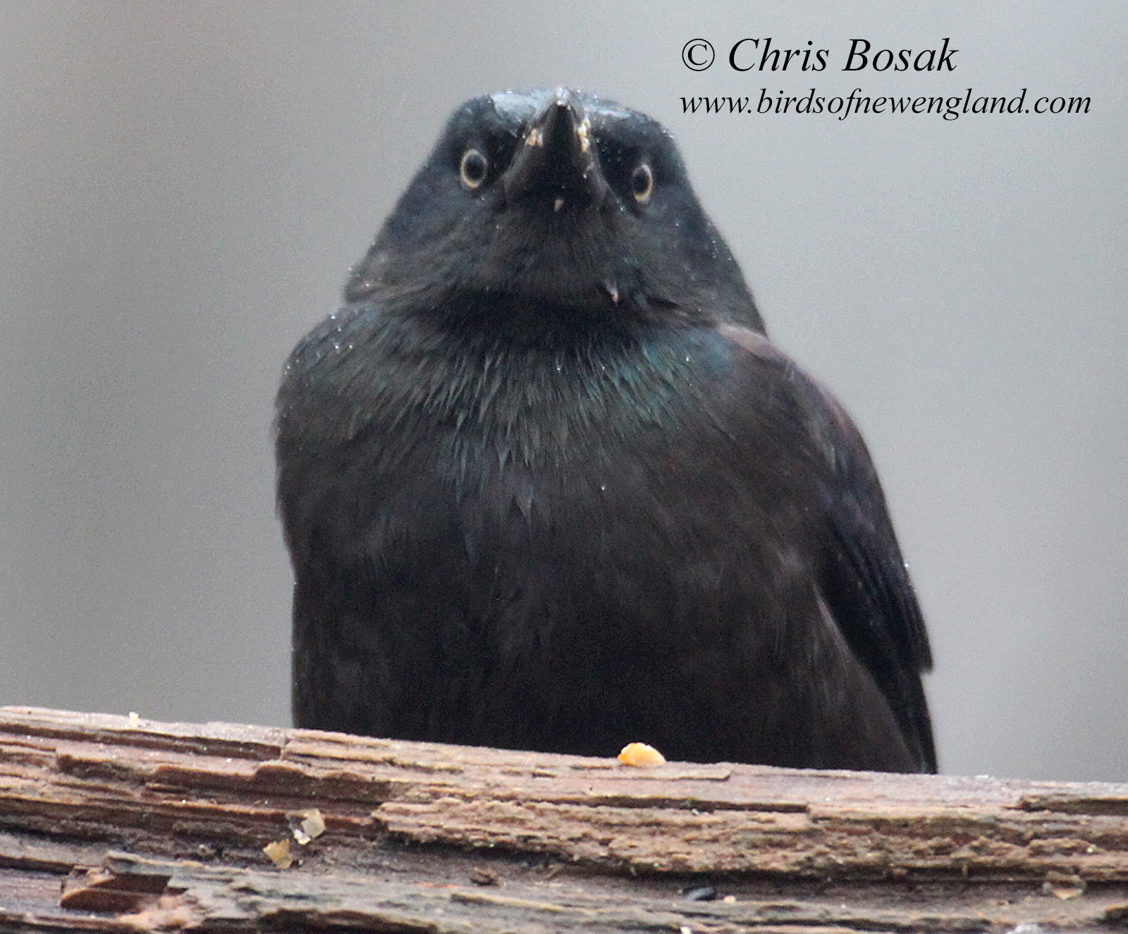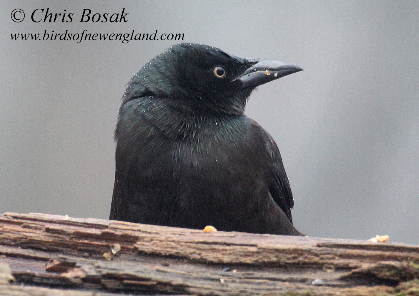 Photo by Chris Bosak A grackle visits a feeding station in New England, December 2020.