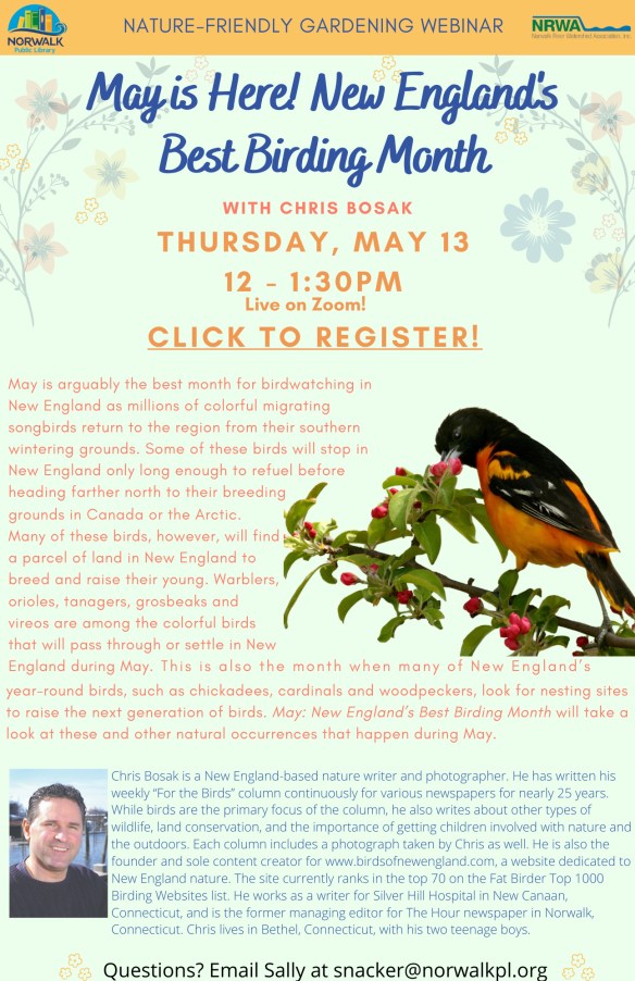 Norwalk Library did a great job with the announcement for my upcoming bird talk. It’s virtual, so please join us.