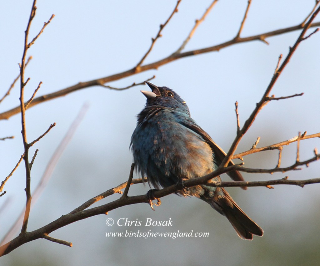 Sorry for the obvious headline, but here are two male indigo buntings: one with the sun (above) and one against the sun (below). No wonder they look a little different every time you see one.
