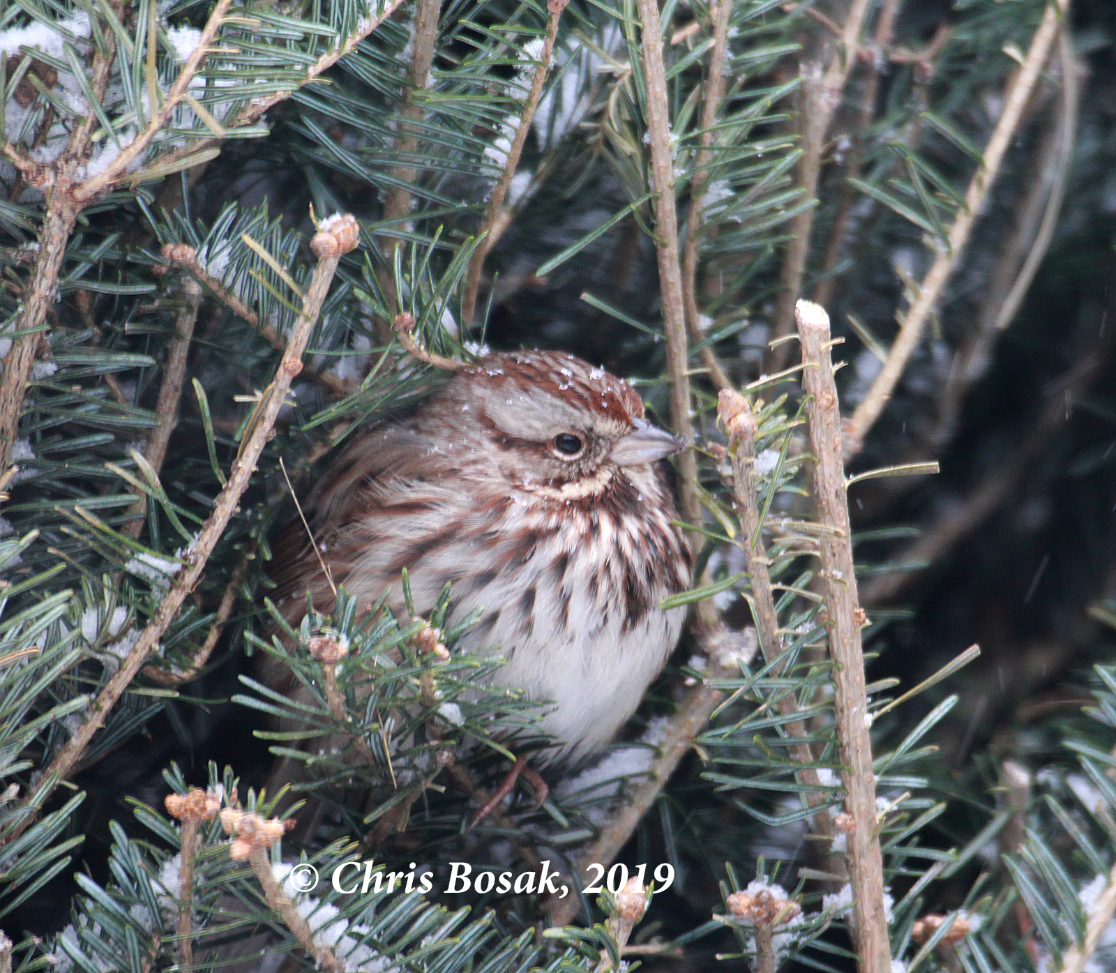 Christmas card 3 from Birds of New England Posted on December 20, 2021 by Chris Bosak Photo by Chris Bosak A song sparrow takes shelter in an old Christmas tree during a snowfall in Danbury, Connecticut, February 2019. Share this: Click to share on X (Opens in new window) X Click to share on Facebook (Opens in new window) Facebook Click to share on Reddit (Opens in new window) Reddit Click to share on Pinterest (Opens in new window) Pinterest More Click to email a link to a friend (Opens in new window) Email Like Loading... Related
