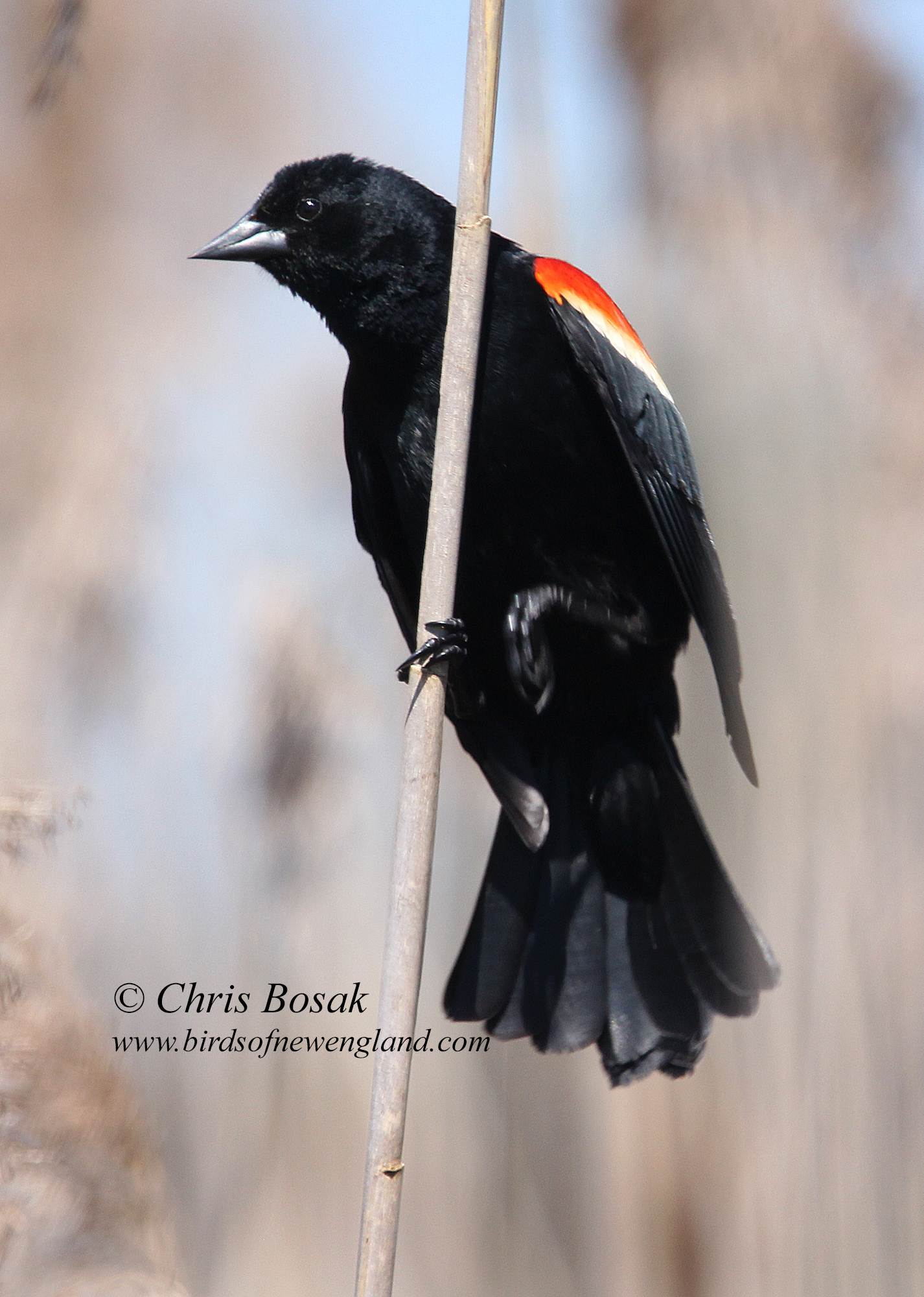 Red-winged blackbirds may be known as an early migrant into New England with their arrivals starting in February or March, but they are common sightings throughout spring and summer until their fall southward migration. I’m posting this now just because I got this shot the other day and it’s a cool-looking bird.