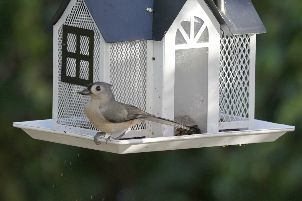 The other feeder is shaped like a house and looks nice hanging on the hook whether there are birds on it or not. Of course, it looks better when birds are on it. I also like that it has three separate chambers for the food so you can offer a mix of seeds and other foods, such as mealworms.