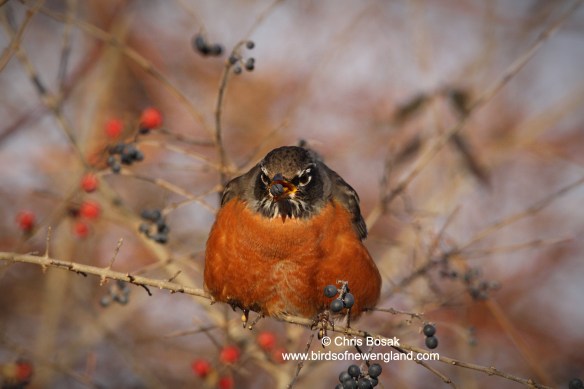 I wrote a few weeks ago about robins being the frontrunner for the Bird of Winter. Click here to find out what that even means. The photo I ran with it showed a robin eating border privet berries. Separately, I also wrote recently about my fascination with photographing birds eating berries. Click here for that one.