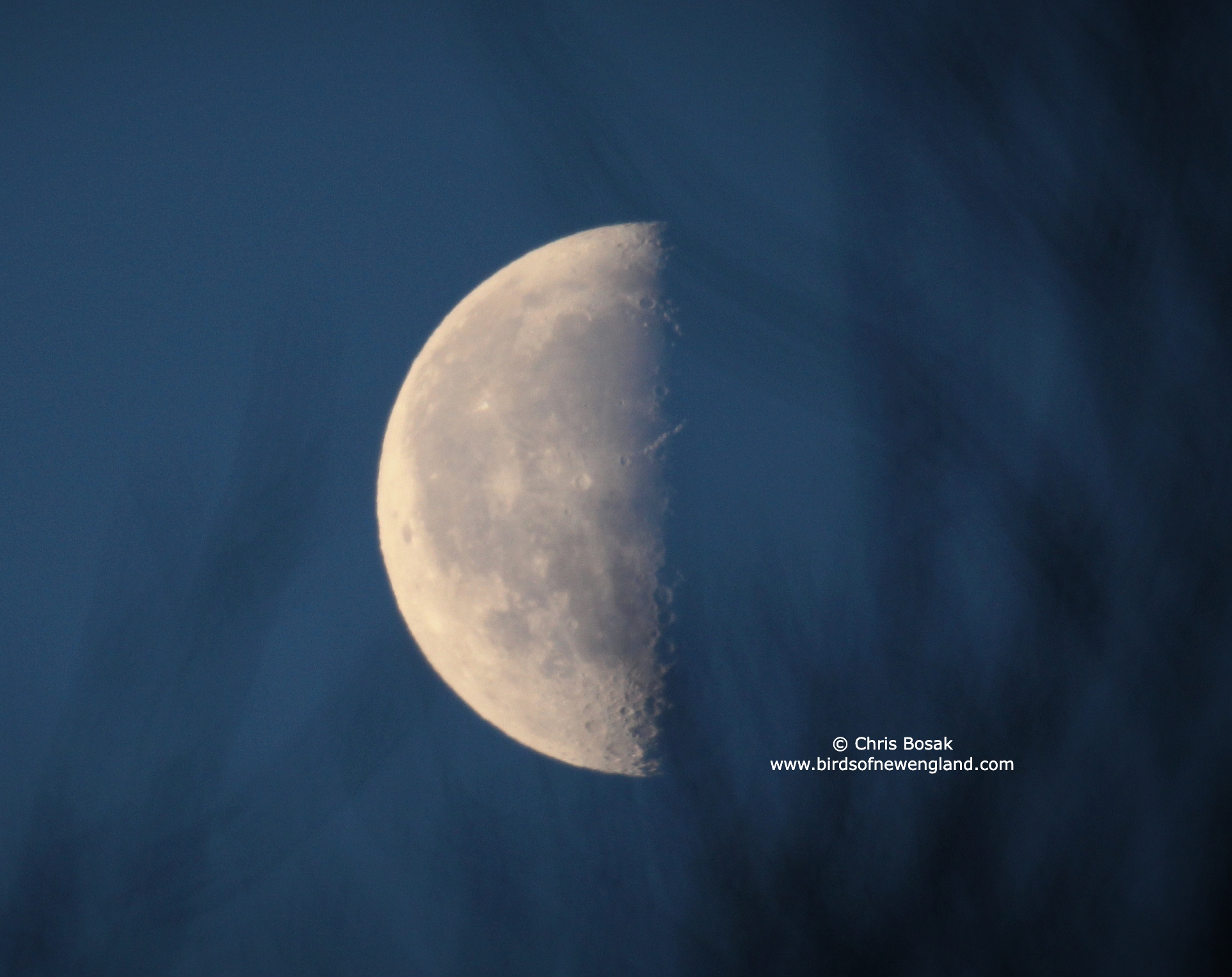 Cool half moon this morning Posted on February 20, 2025 by Chris Bosak Photo by Chris Bosak Half moon in Connecticut, February 20, 2025. There was a cool half moon out in Connecticut early this morning (Feb. 20, 2025). Share this: Click to share on X (Opens in new window) X Click to share on Facebook (Opens in new window) Facebook Click to share on Reddit (Opens in new window) Reddit Click to share on Pinterest (Opens in new window) Pinterest More Click to email a link to a friend (Opens in new window) Email Like Loading... Related