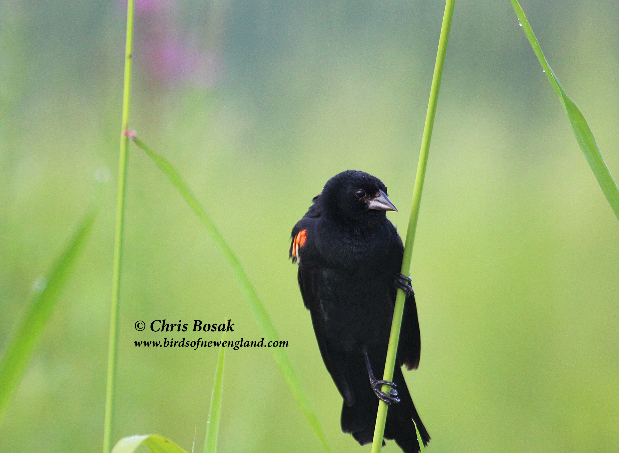 One of my favorite ways to view wildlife is in my canoe. I can’t even begin to guess how many miles my 14-foot Radisson has in it. There will be more exciting photos coming up from a recent canoe trip, but for now here’s a cool shot of a red-winged blackbird.