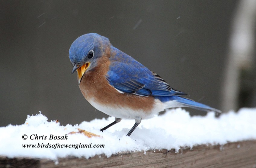 bluebird snow8c Published February 14, 2021 at 1168 × 770 in bluebird snow8c Photo by Chris Bosak An eastern bluebird braves a New England winter and visit a backyard for mealworms, winter 2020.