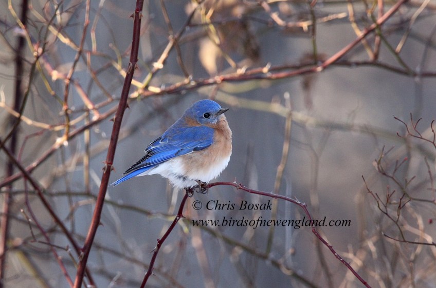 bluebird1c Published January 27, 2022 at 1600 × 1059 in bluebird1c Photo by Chris Bosak An eastern bluebird perches on a branch in New England, Jan. 2022.