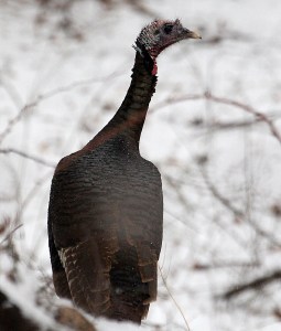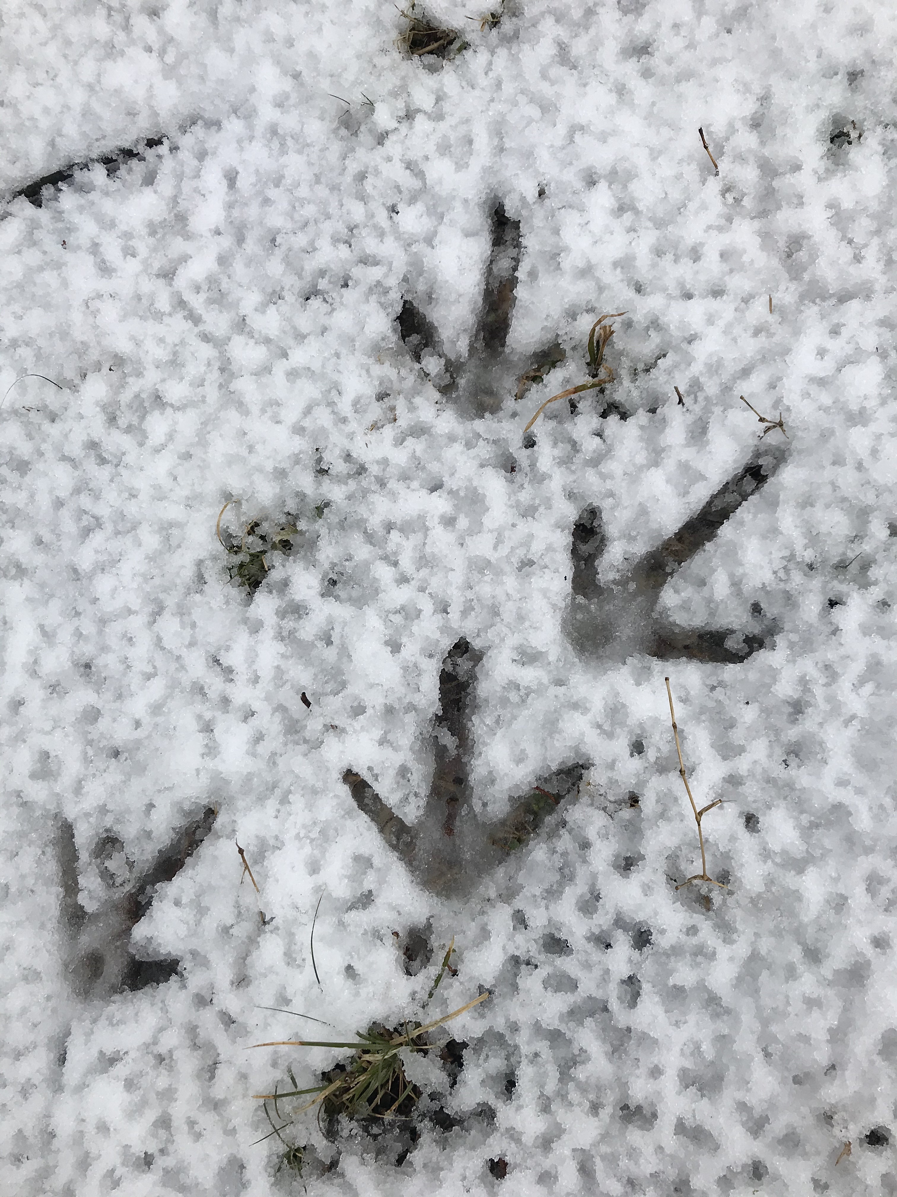 Above are the tracks made a few moments before the three turkeys walked down the hill and into the woods …