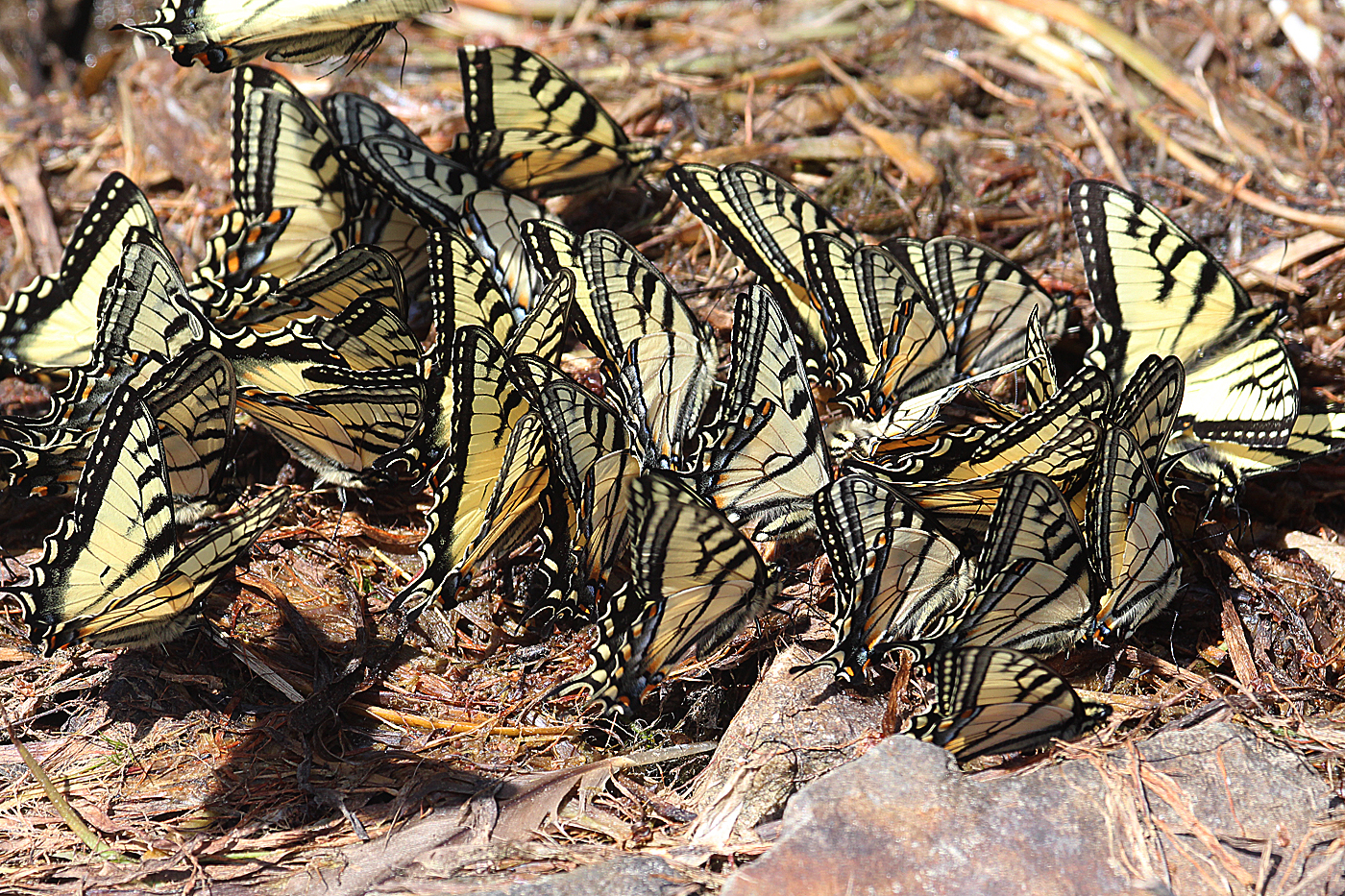 Photo by Chris Bosak Tiger Swallowtails gather at the edge of the pond at Deer Mountain Campground in Pittsburg, N.H., in summer 2017.