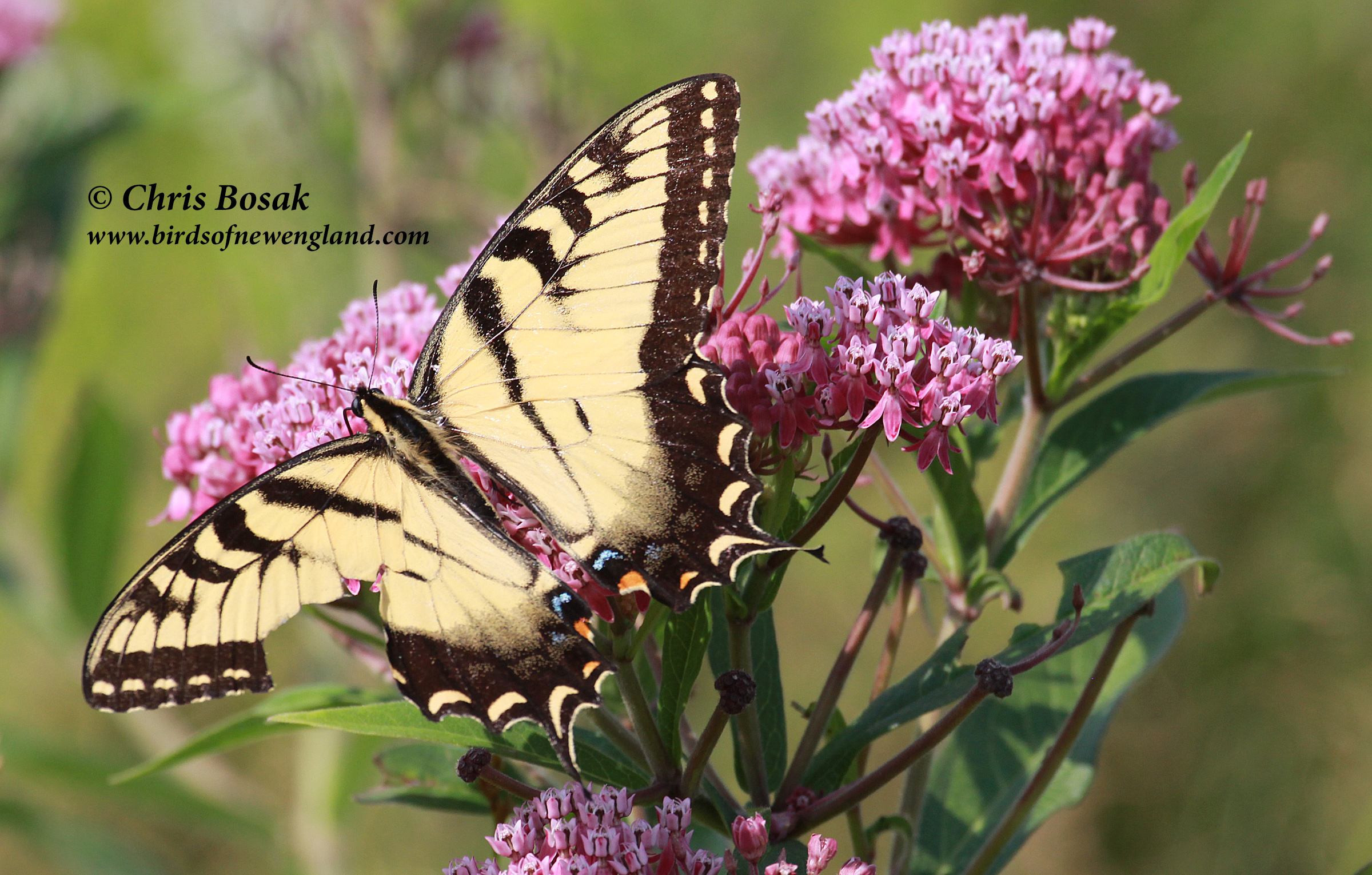 I’ll wrap up Birds of New England’s first unofficial Butterfly Weekend with some bonus shots of eastern tiger swallowtails. Monarchs may have been more numerous on my recent walks, but swallowtails proved to be more cooperative.