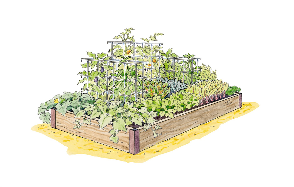 Image by Gardener’s Supply Company he High Yield Vegetable Garden Plan enables gardeners to grow more than 50 pounds of produce in only 18 square feet of space.