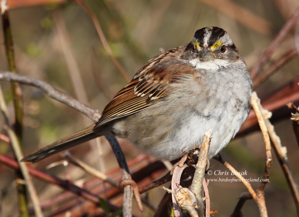 It won’t be long until white-throated sparrows become more scarce as they head north and become less conspicuous for the breeding season. Until then, there are still photo opportunities like this …
