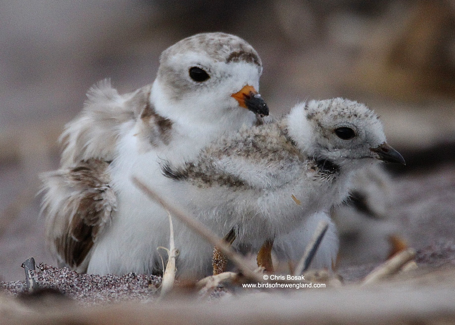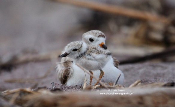 Piping plover chick and adult, Milford, Connecticut, summer 2025.