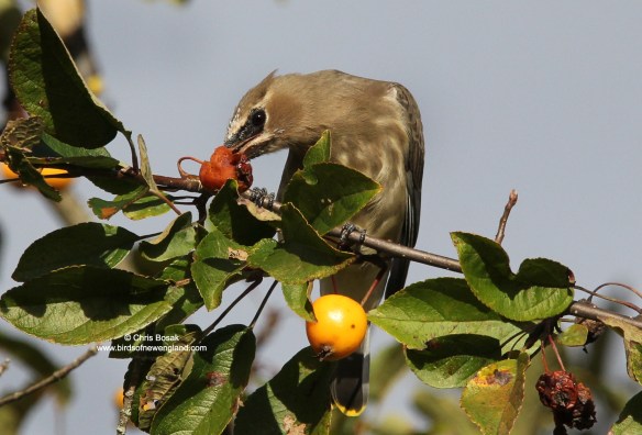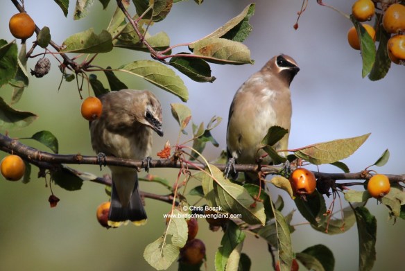Cedar waxwings on crabapple tree, fall 2025, Huntington State Park, CT.