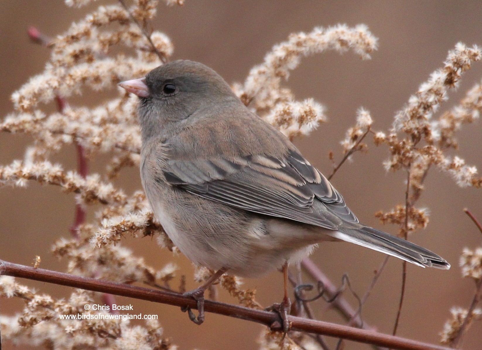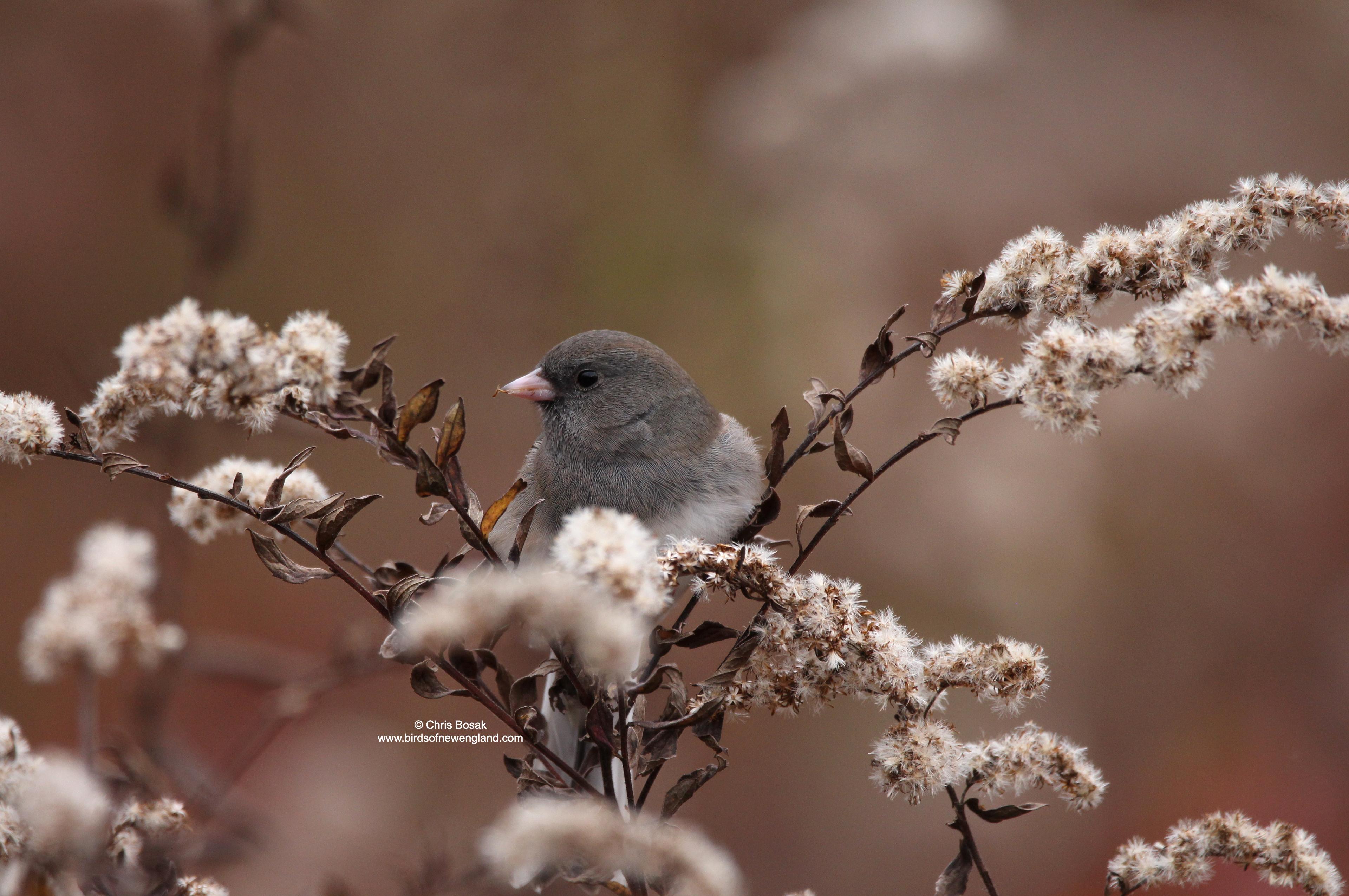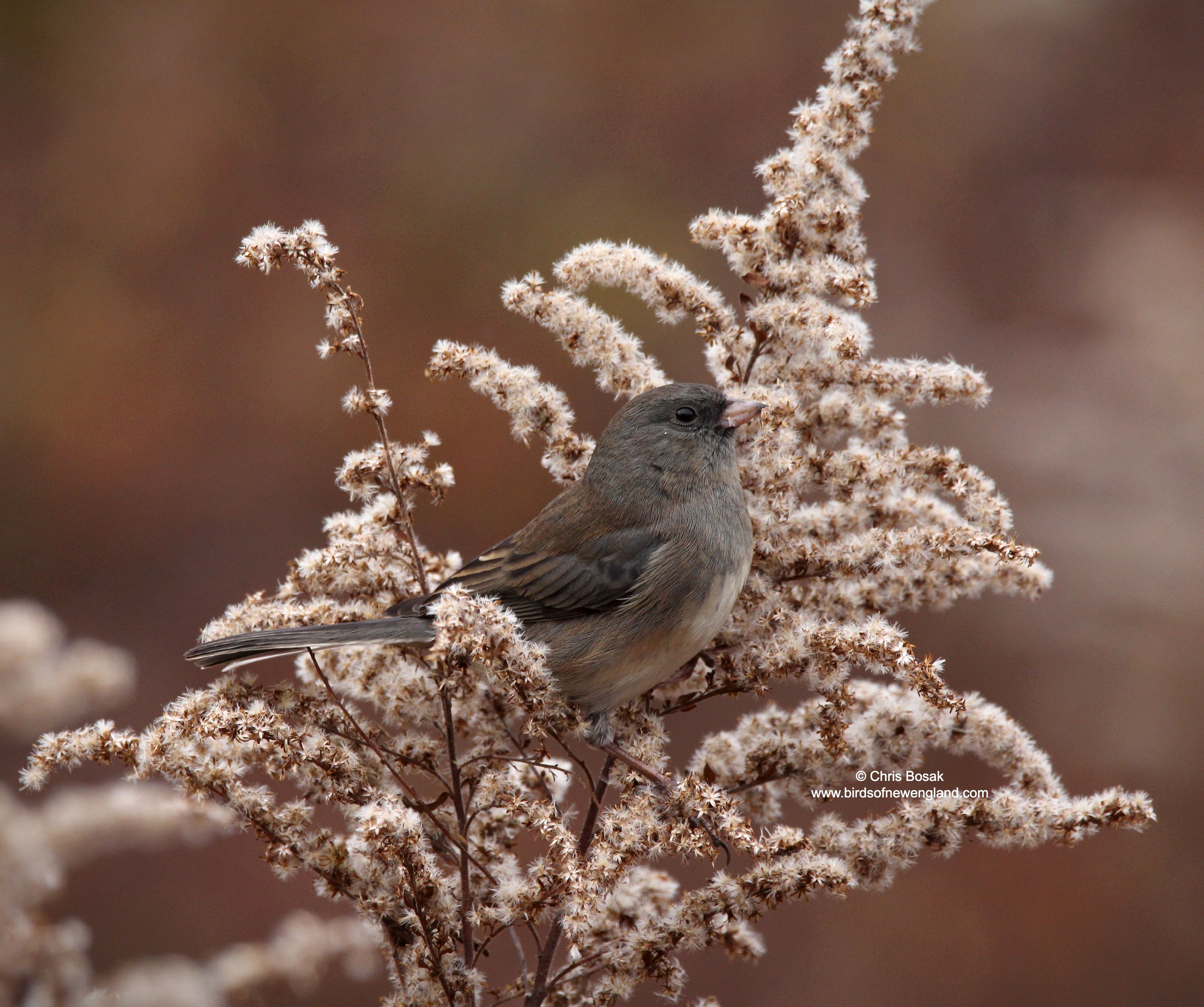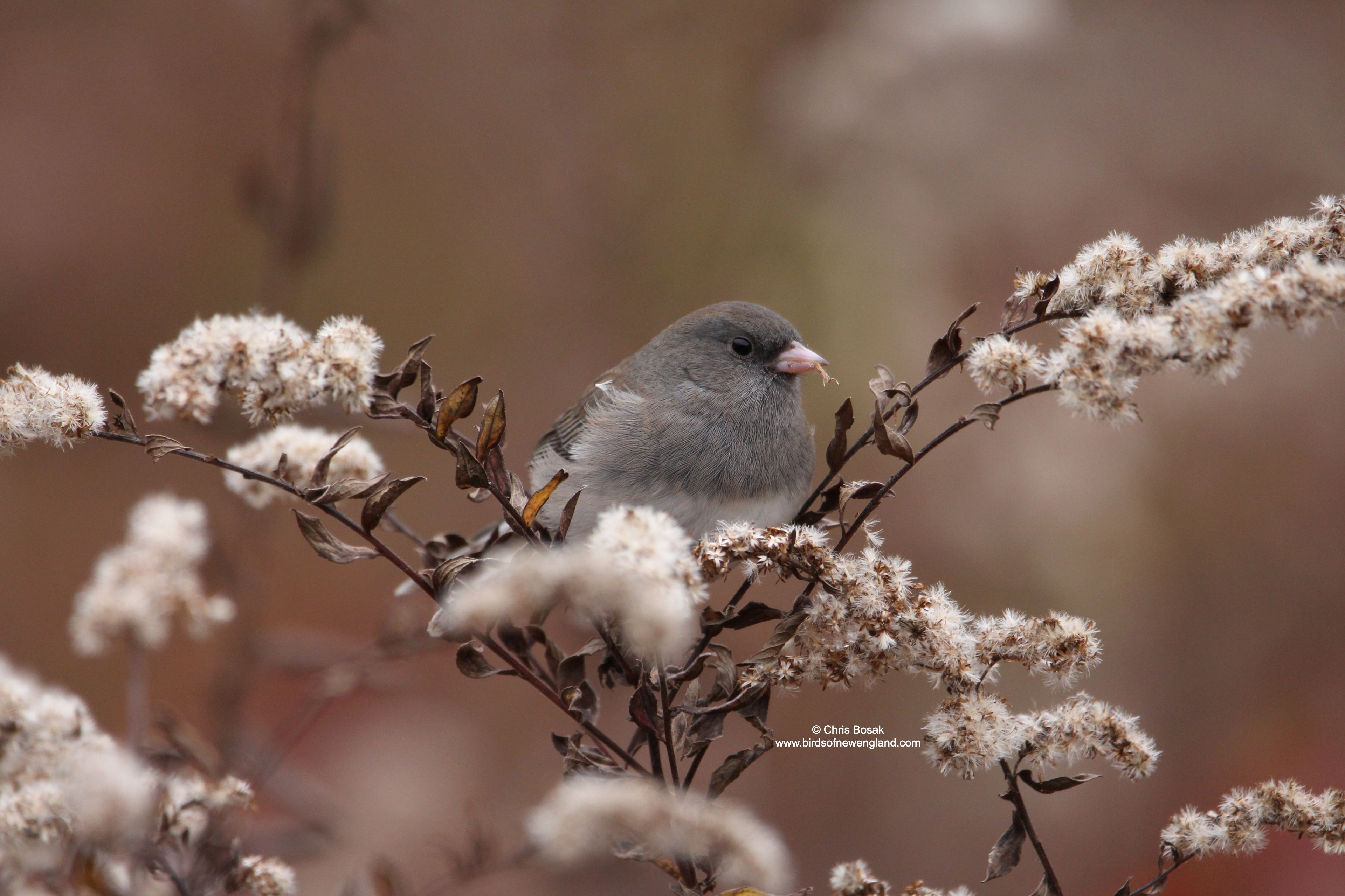 Photo by Chris Bosak – A dark-eyed junco eats goldenrod seeds at Huntington State Park in Redding, Connecticut, November 2025.Photo by Chris Bosak – A dark-eyed junco eats goldenrod seeds at Huntington State Park in Redding, Connecticut, November 2025.Photo by Chris Bosak – A dark-eyed junco eats goldenrod seeds at Huntington State Park in Redding, Connecticut, November 2025.
