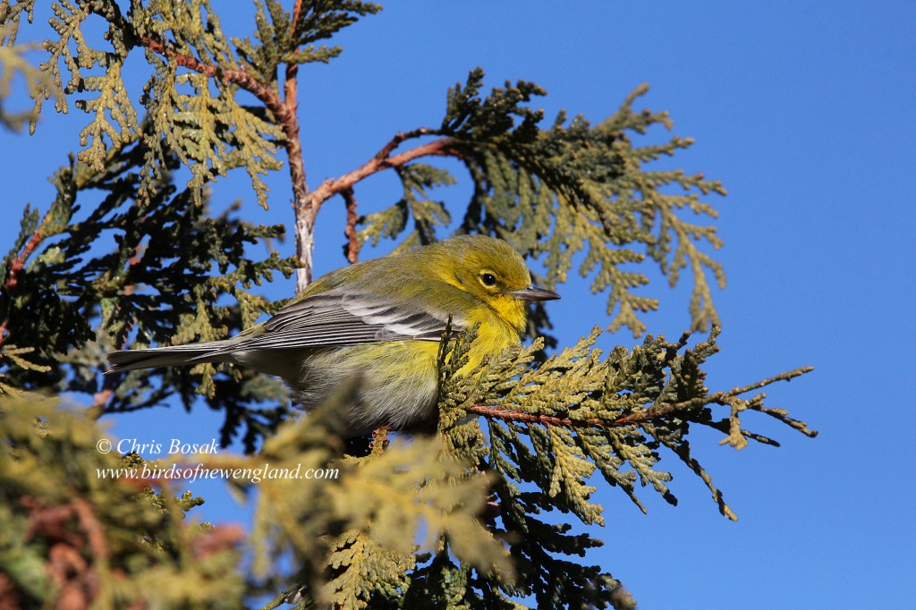 Cedar waxwings are another bird species not always thought of when it comes to winter birding in New England, but it’s always a treat when you stumble across a flock. Keep an eye on any berry sources, as they give you your best shot at finding waxwings.