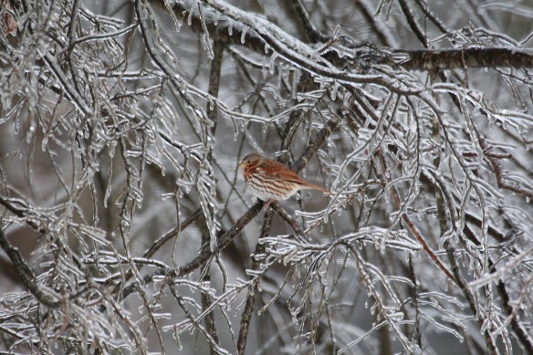 Parts of southern New England remain encrusted in ice. It’s been several days since the snow-then-ice storm hit, but brutally cold weather followed to keep everything frozen. The beautiful ice-covered landscape will change soon, however, as the forecast calls for rain and temperatures in the 40s. In the meantime, I’ll keep taking and sharing bird photos with this icy backdrop.