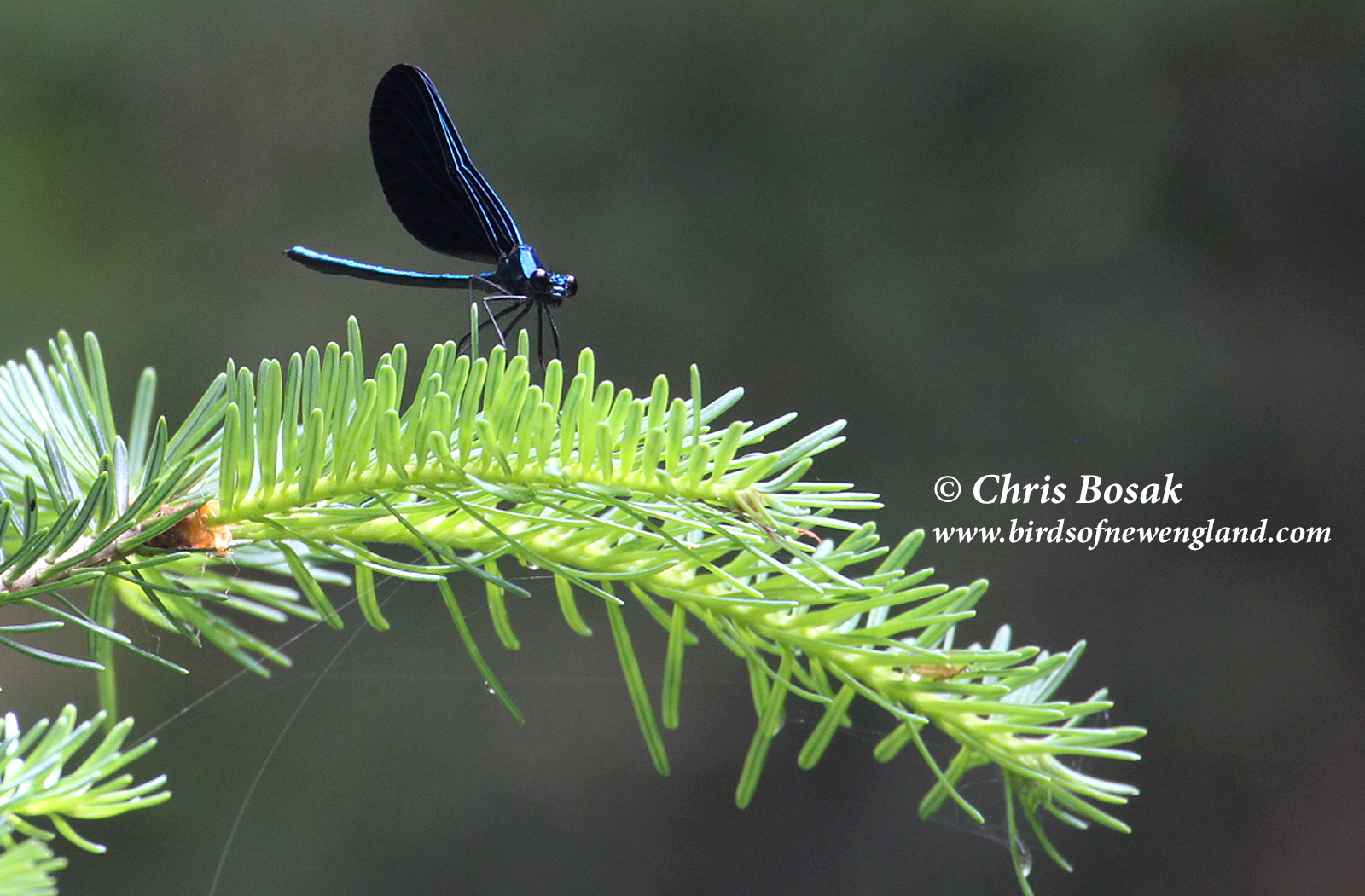 damselfly1c Published July 26, 2020 at 1600 × 1051 in damselfly1c Photo by Chris Bosak An ebony jewelwing perches on a pine bough in northern New Hampshire, July 2020.