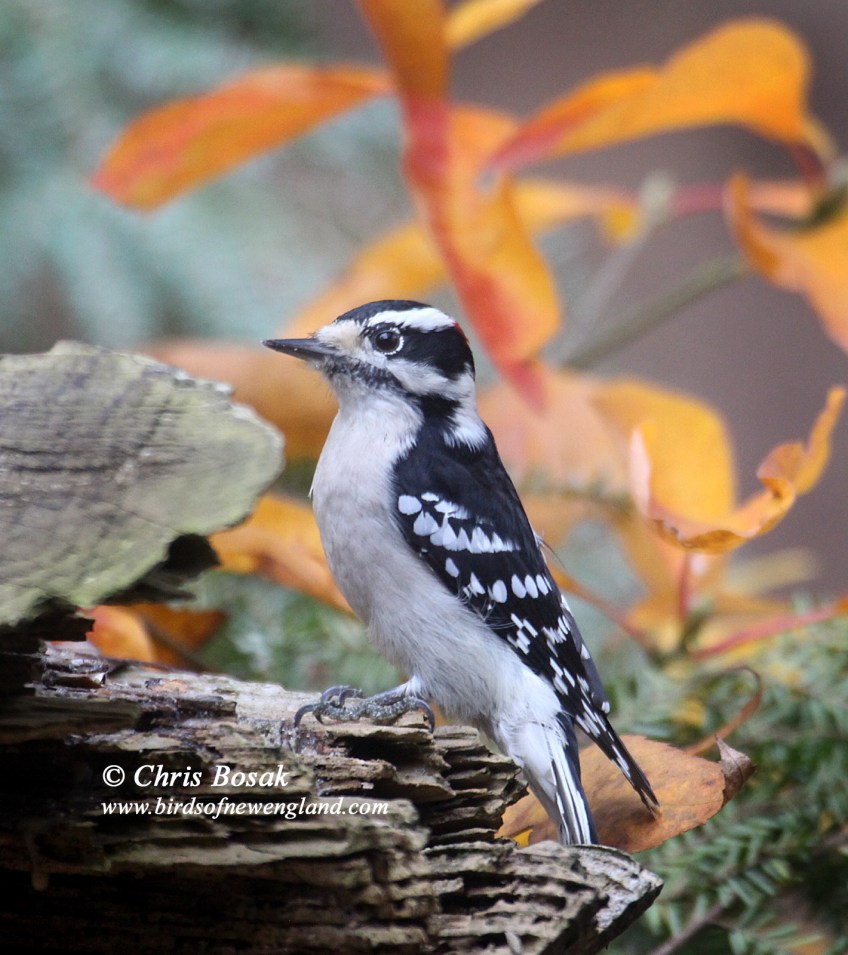 downy fall1c Published October 26, 2020 at 1420 × 1600 in downy fall1c Photo by Chris Bosak A downy woodpecker perches on a log in New England, October 2020.