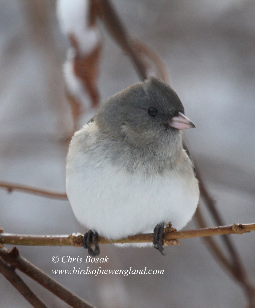 junco cold 1c Published January 13, 2022 at 1324 × 1600 in junco cold 1c Photo by Chris Bosak A junco perches on a branch after a snowfall in New England, January 2022.
