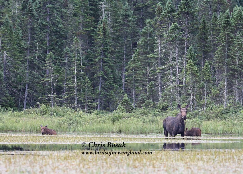 moose1c Published July 21, 2020 at 1600 × 1150 in moose1c Photo by Chris Bosak A cow moose and two calves eat aquatic vegetation from a pond in northern New Hampshire, July 2020.