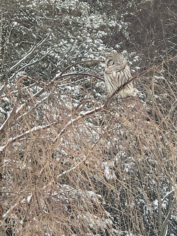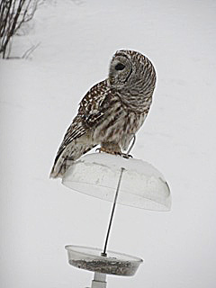 Frank and Debbie Lucius had this barred owl for several days at their Surry, NH, home, winter 2019.