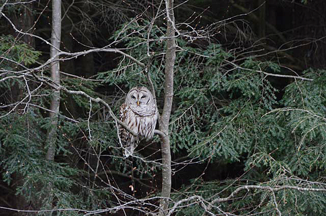 Jeannie Merwin of Marlow, N.H., said this Barred Owl returned to her property on the same exact day as it did last year. This photo was taken in early March 2014.