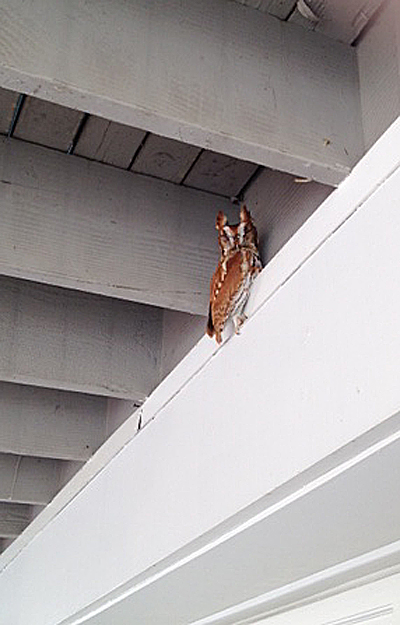 Carl Cederstav of Norwalk, CT, sent in this photo of a red-morph Eastern Screech Owl that was under his deck.