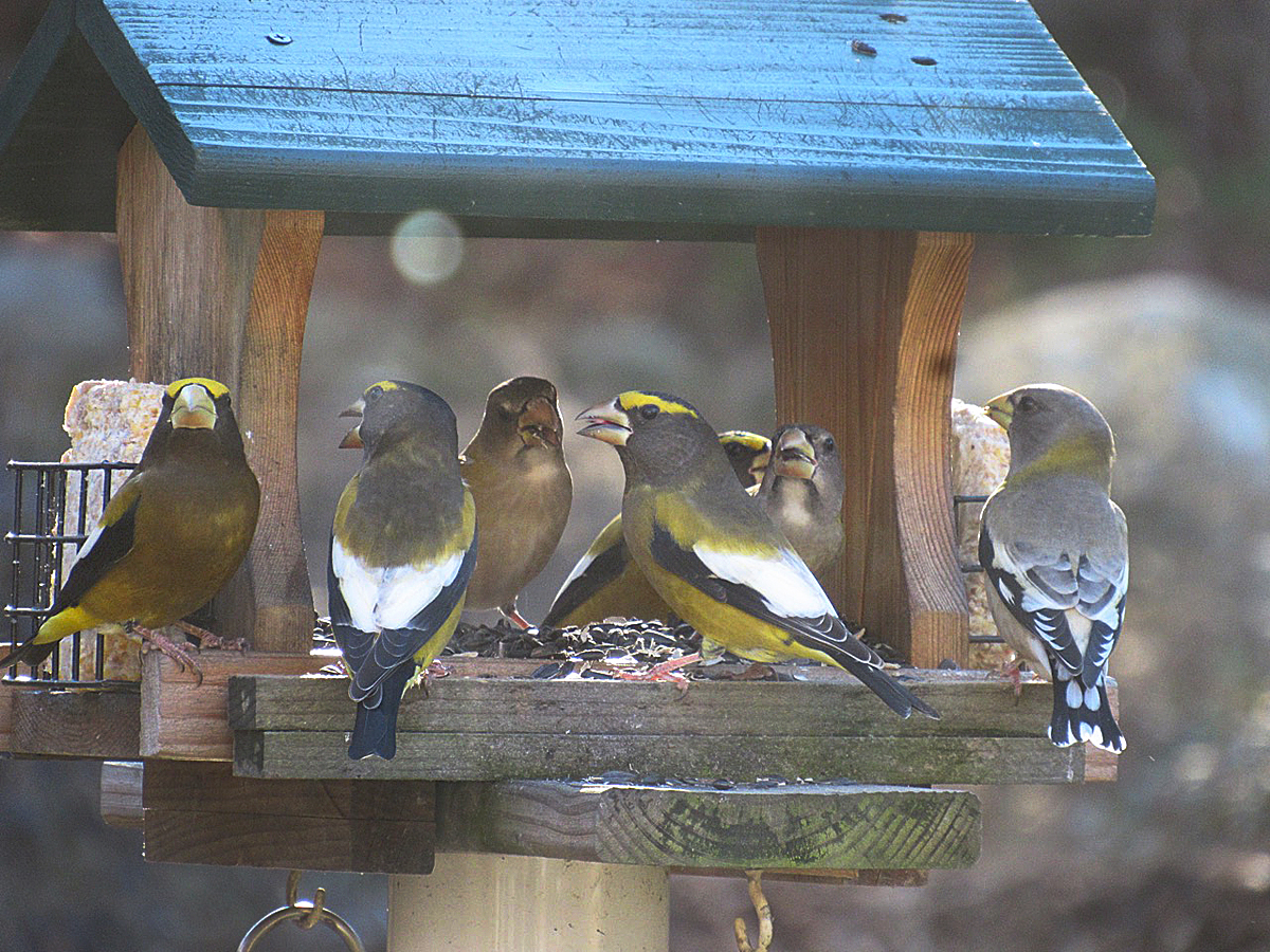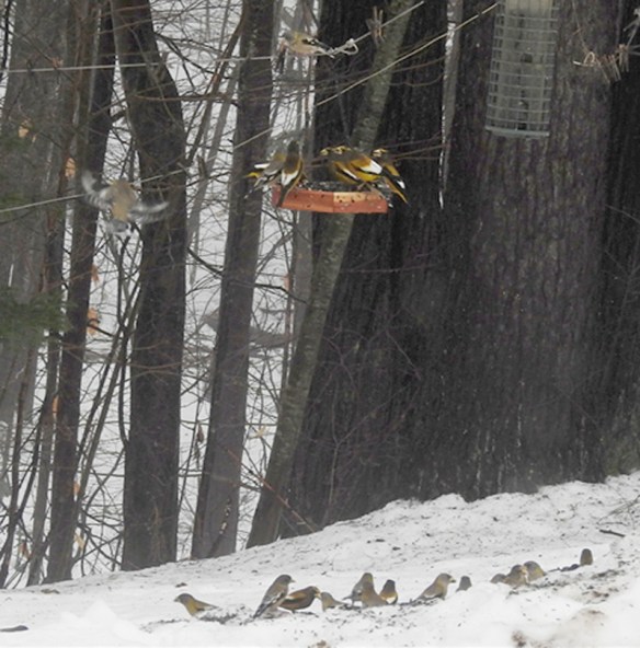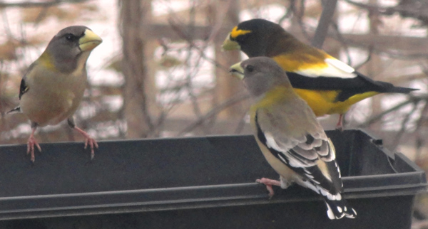 Stephanie Tickner got these shots of evening grosbeaks at her Marlow, N.H., feeding station.