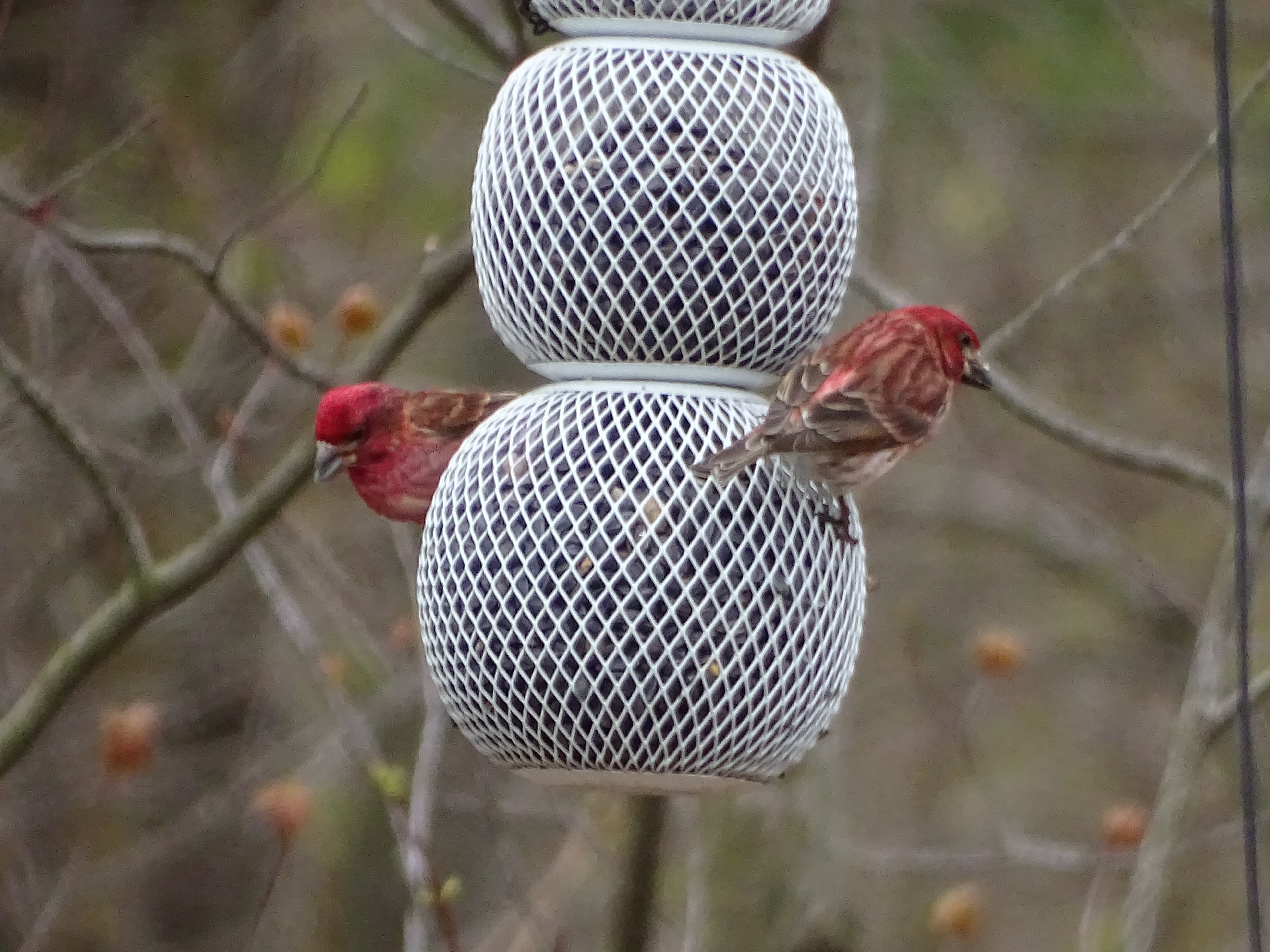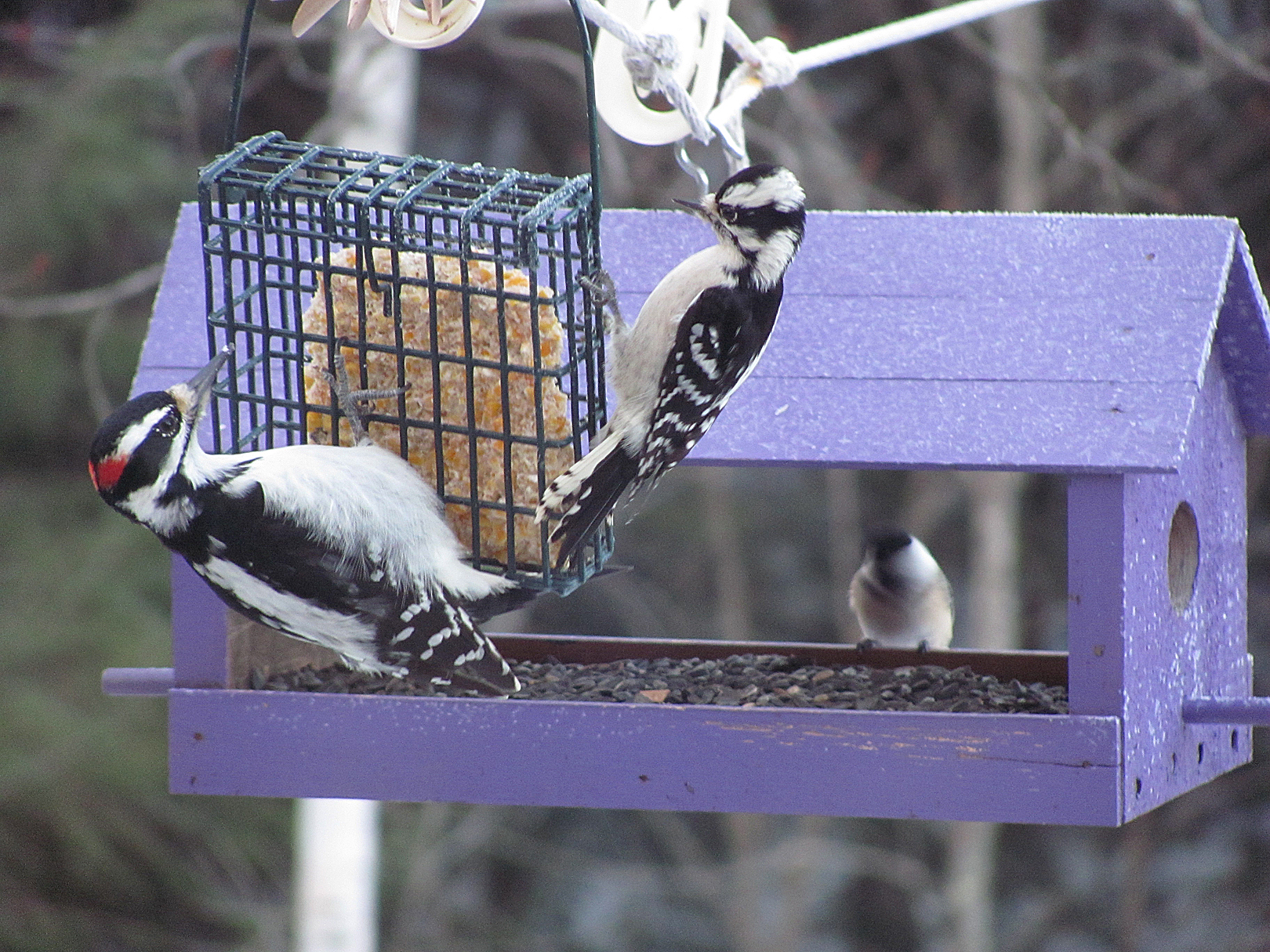 Richard Donohue of NH had these handsome visitors to his suet feeder.