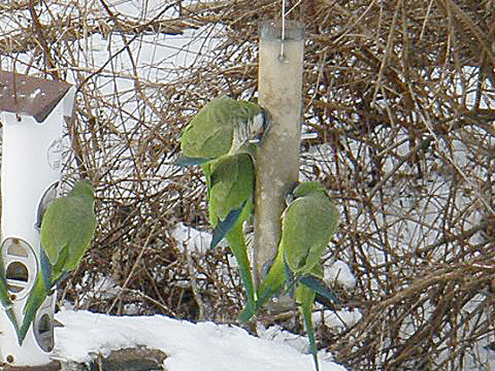 Bob Weiss of Westport, CT., had these visitors to his backyard feeding station in Dec. 2013. Monk Parakeets are sometimes found at backyard feeders in coastal Connecticut.