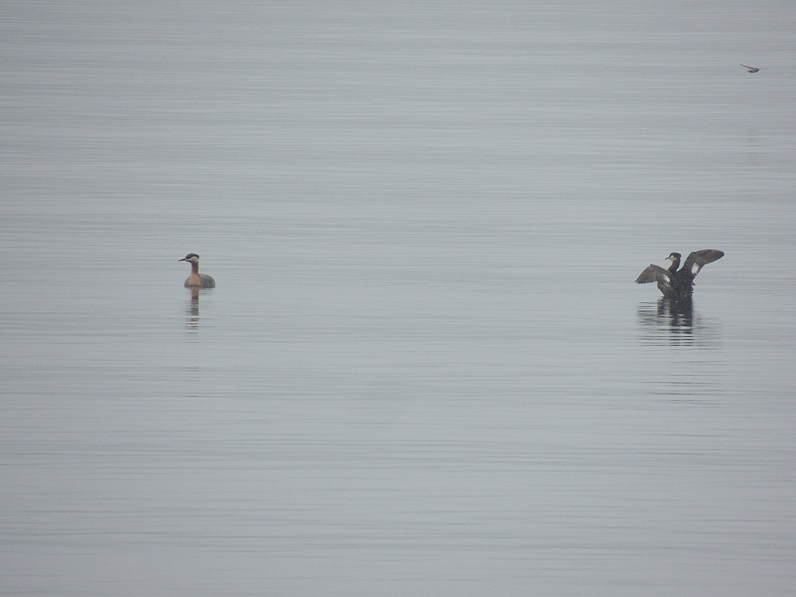 Carol sent in this photo of Red-necked Grebes on Spofford Lake in southwestern New Hampshire. She saw them in the spring.