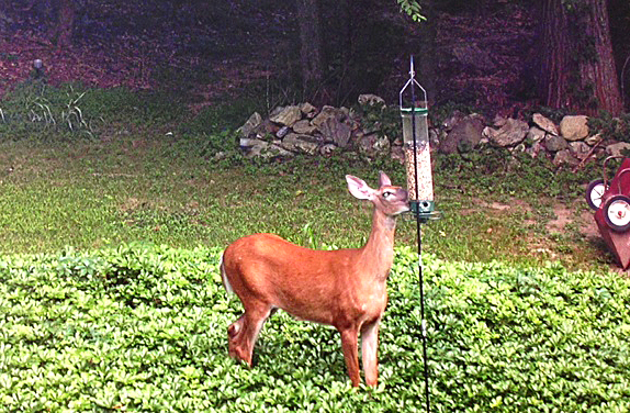 Here’s a bold white-tailed deer taking bird seed from a birdfeeder. Photo submitted by Doris McKee