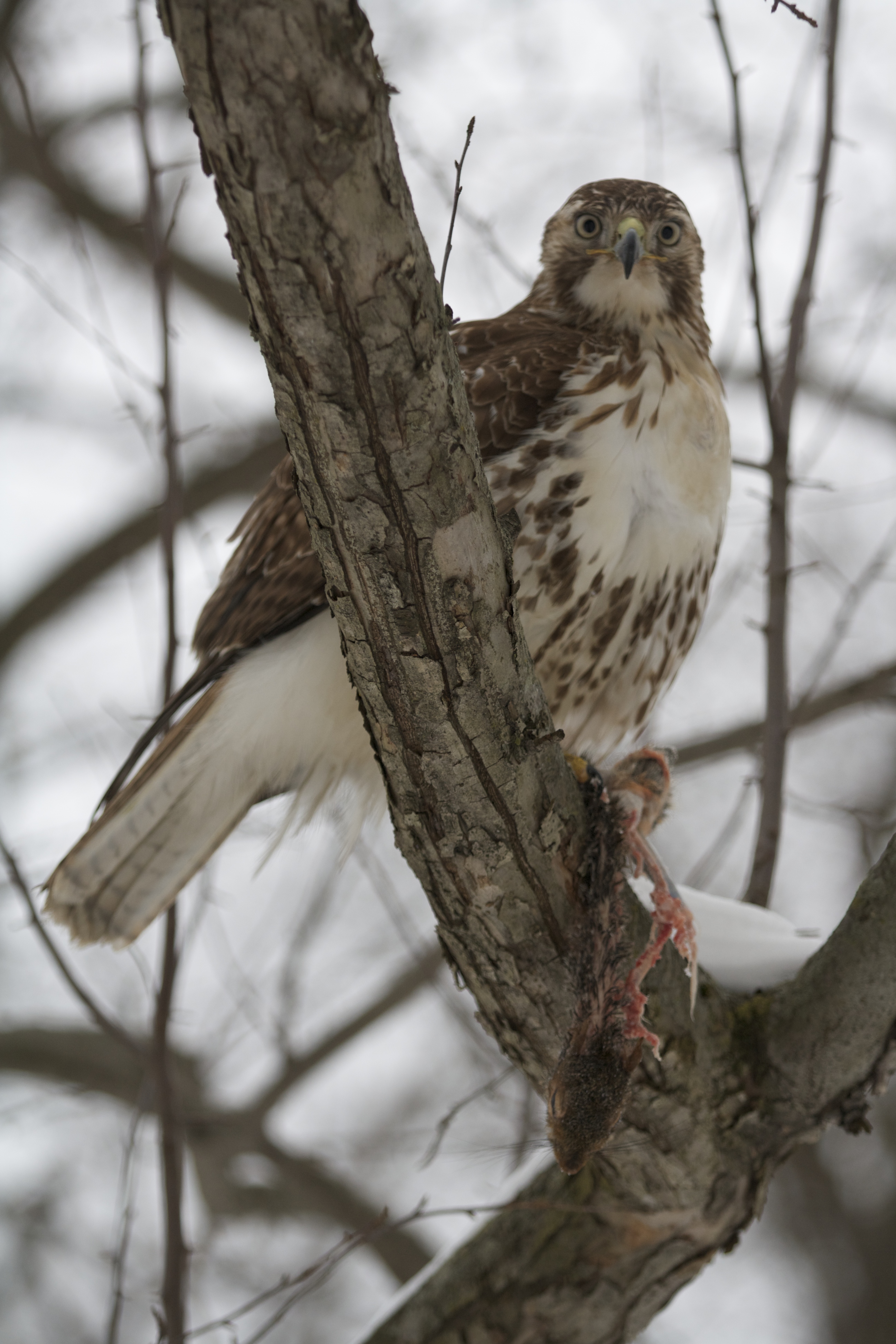 Riley Rising of Connecticut got this shot of a Red-tailed Hawk eating a squirrel in Feb. 2015, in Waterbury, Conn.