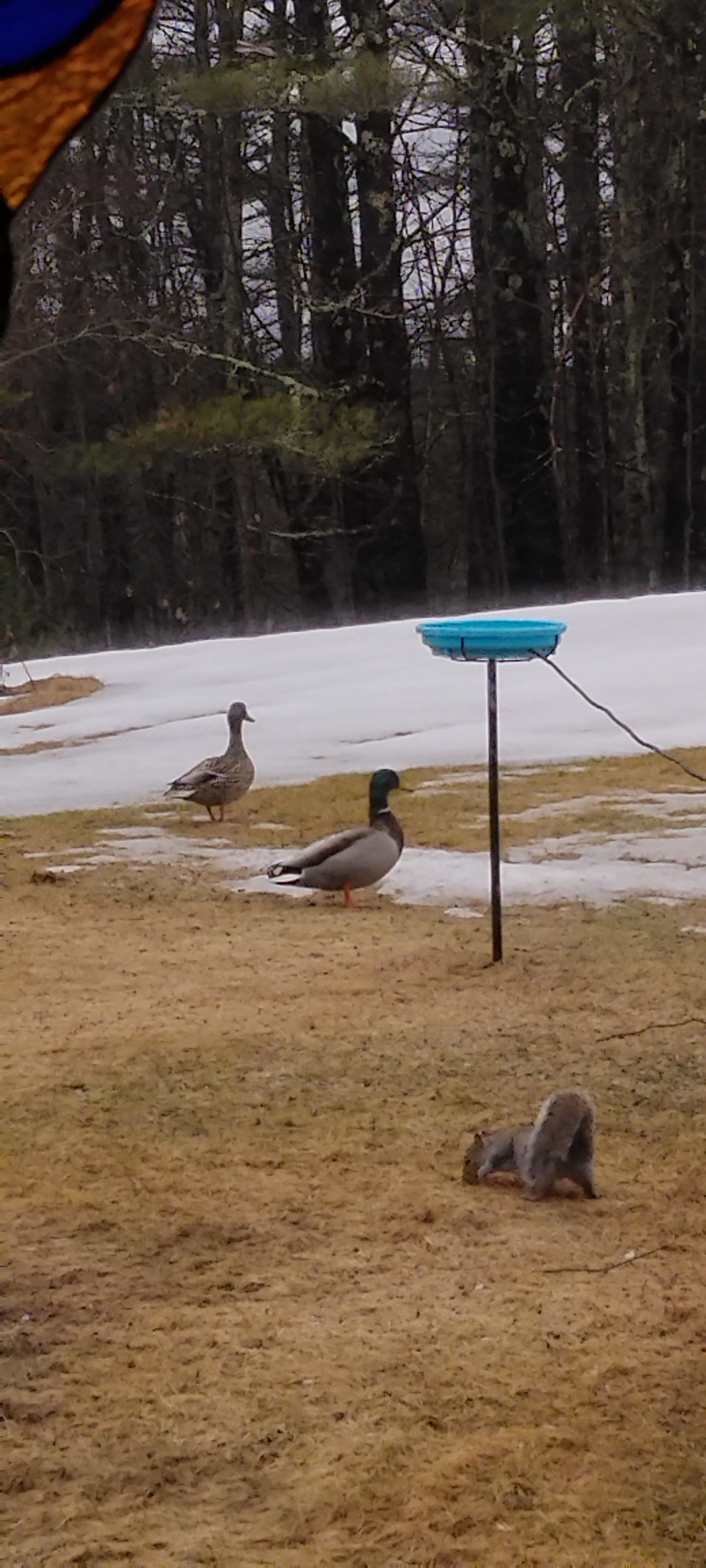 Kathy from Meredith, NH, sent in this shot of a mallard pair waddling up to the feeding station.