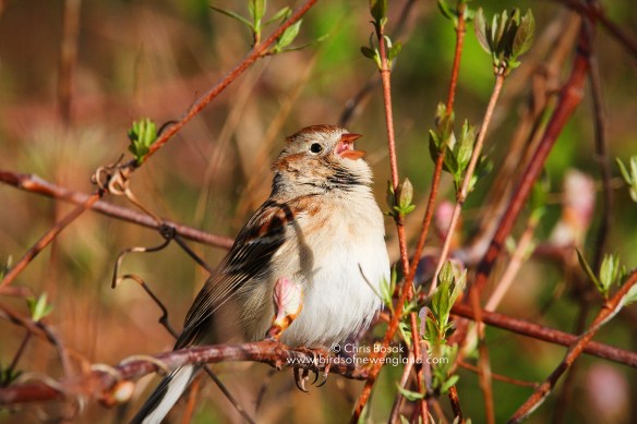 Here’s the second installment of Singing in the Spring. The field sparrow looks more like a typical sparrow than the previously featured eastern towhee, but a close look reveals a handsome bird with subtle beauty.
