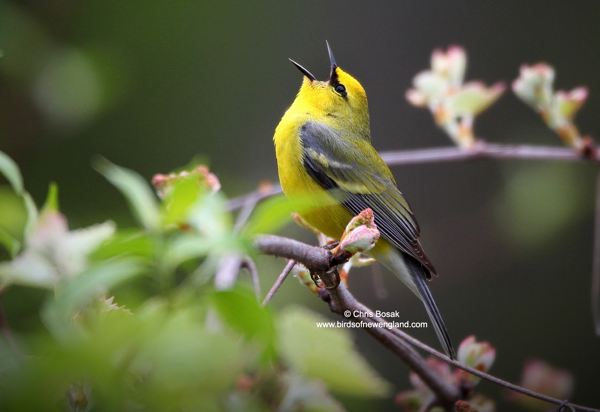 Here is the latest photo in the Singing in the Spring series: the blue-winged warbler. One of my favorite warblers, blue-winged warblers arrived back in New England over the last two weeks. They nest in New England and have a song that sounds more insect-like than bird-like.