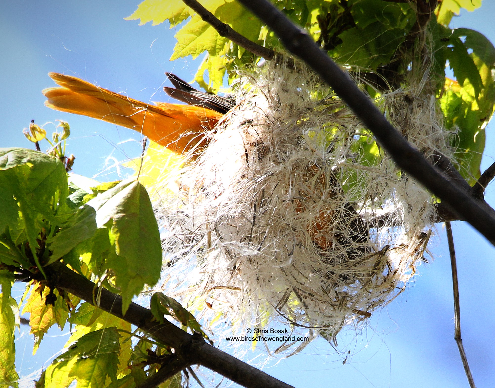 Everything about a Baltimore oriole nest is ingenious. From the design and materials to the location selection, the nest is a perfect haven to raise young birds safely from predators (for the most part).