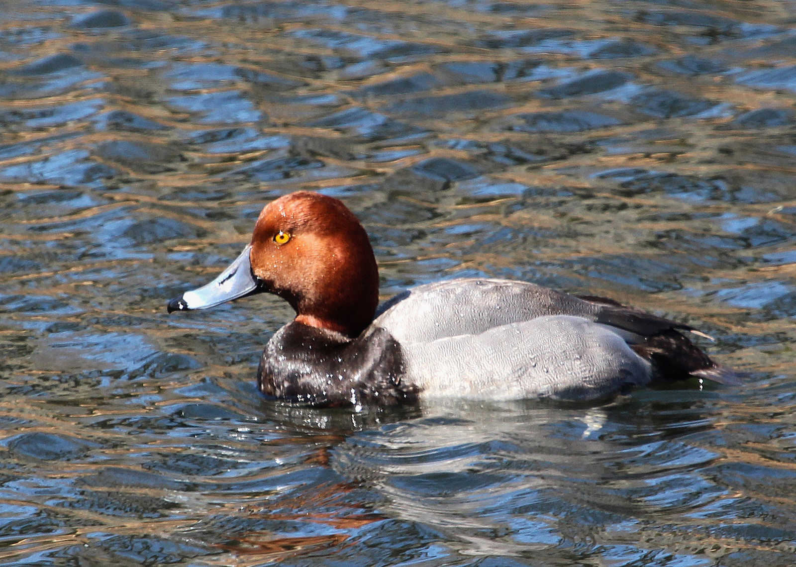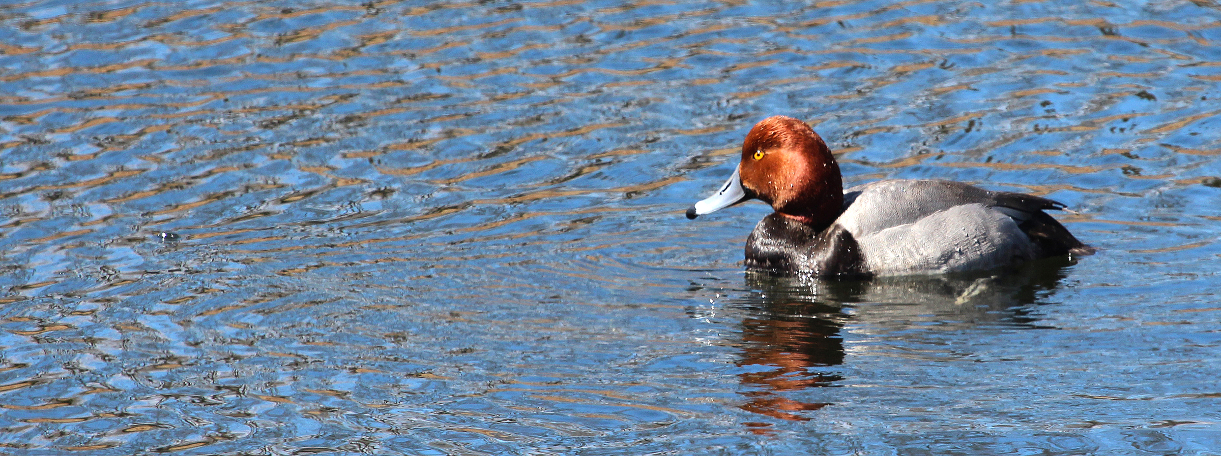 At one point or another, I saw the Redhead “cross paths” with each of the other kinds of ducks. With one exception, the other ducks and geese basically paid no attention to the Redhead. In fact, at one point it was diving among a small flock of Canada Geese. It resurfaced next to a different goose every time and none of the geese seemed to mind.