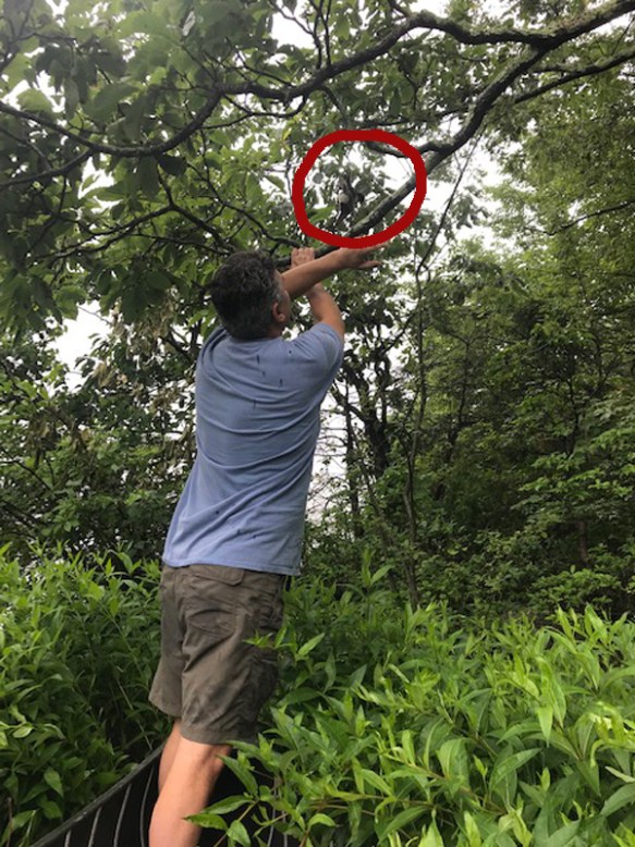 “There’s a bird stuck on fishing line dangling from a tree,” he said. “Come help it. It’s freaking out. I feel so bad for it.”