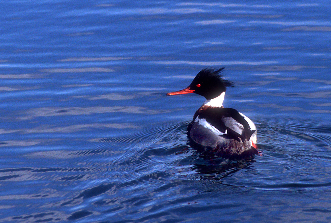 Photo by Chris Bosak Red-breasted mergansers may be seen throughout winter on the ocean or Long Island Sound.