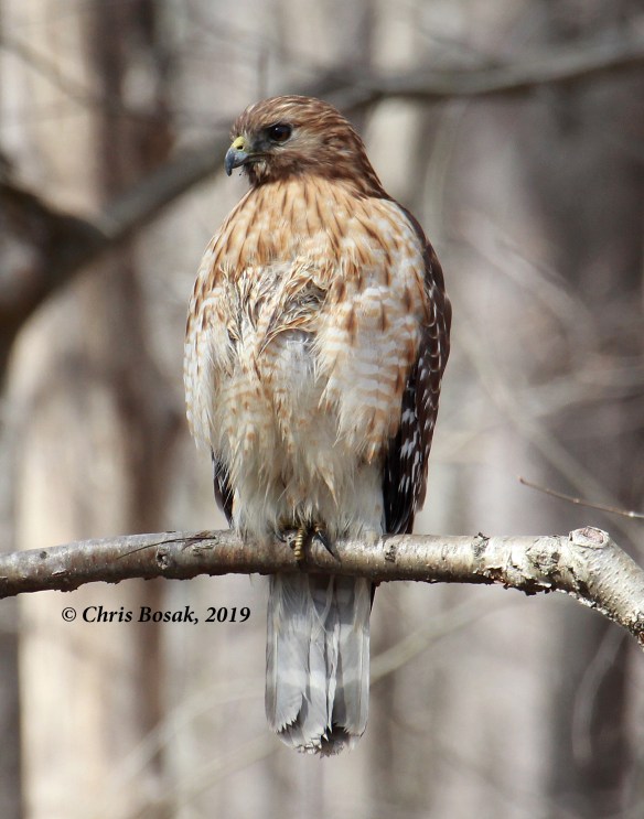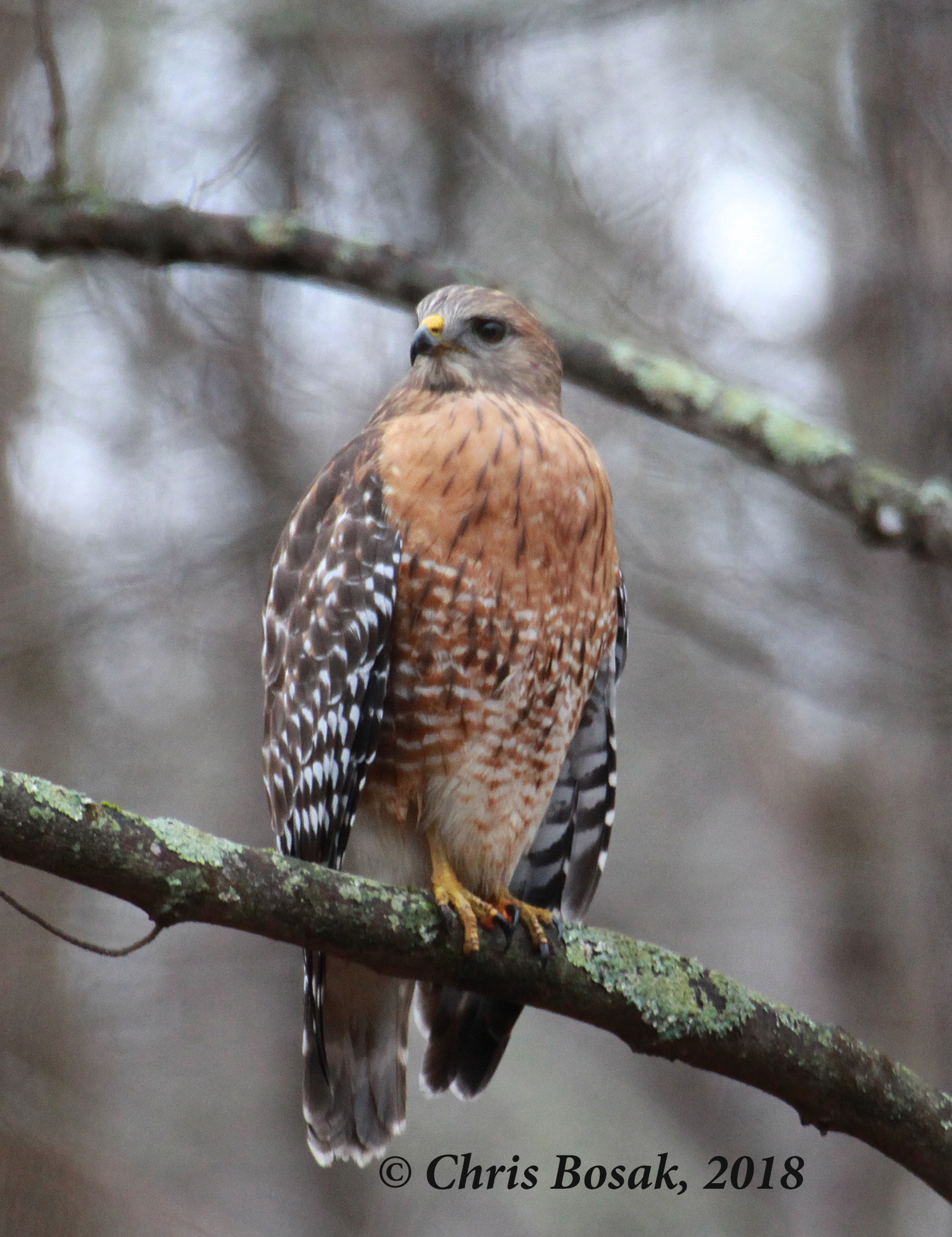 Here’s our old friend, the red-shouldered hawk. This time he’s looking right at us.
