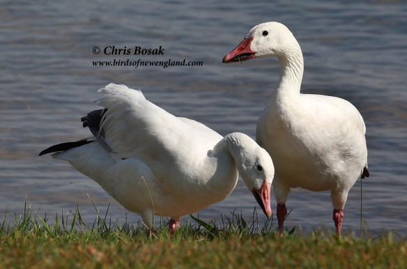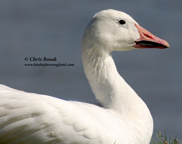 I know, same as yesterday, geese are not ducks. They are close enough for this very unofficial birdsofnewengland.com Duck Week celebration. Snow geese gather in massive numbers in some parts of the Atlantic flyway. In many cases, they are uncountable because there are so many. In other parts, however, snow geese are a fairly rare sighting. I live in a part of New England where snow geese are not seen often. In fact, this one I saw at a beach was the first one I had seen in years. Usually, when they are seen where I live, it is a single snow goose within a flock of Canada geese. This one, however, was alone near the beach. I hope it finds more of its kind during migration.